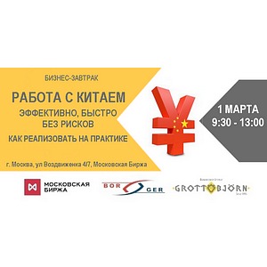 14.02.2017 Работа с Китаем: эффективно, быстро, без рисков. Как реализовать на практике? 01.03.2017. На бизнес-завтраке будет представлена актуальная информация, для тех, чей бизнес связан с Китаем и освещены изменения, произошедшие в последнее время в сфере международных грузоперевозок и финансовых инструментах ВЭД. Как вести бизнес с Китаем и не связаться с мошенниками. Основные способы доставки грузов из Китая в Россию: их преимущества и недостатки; Новые способы доставки грузов из Китая ускоренными контейнерными поездами; Перспективы китайского юаня на мировых финансовых площадках; Финансовые...