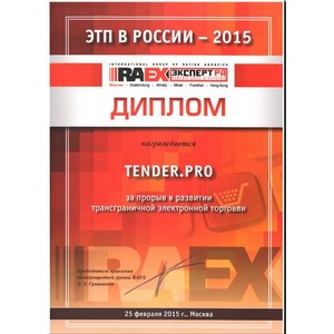 На конференции «Электронные торговые площадки в России: кто есть кто», организуемой рейтинговым агентством «Эксперт РА» (RAEX), компания ТендерПро получила диплом «За прорыв в развитии трансграничной электронной торговли». Конференция проходит во второй раз. В мероприятии приняли участие...