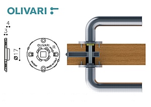 • Любая фурнитура Olivari с новым основанием Bassa может быть установлена как с помощью шурупов, так и при помощи двусторонних стяжек по стандарту DIN.