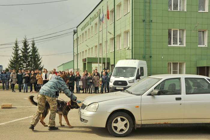 Заключительным и весьма зрелищным этапом встречи стало выступление кинологов со своими питомцами. Они продемонстрировали поиск наркотиков в багаже и в автомобиле.