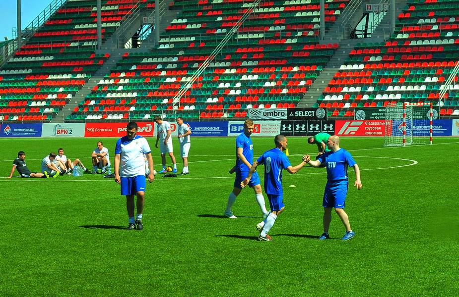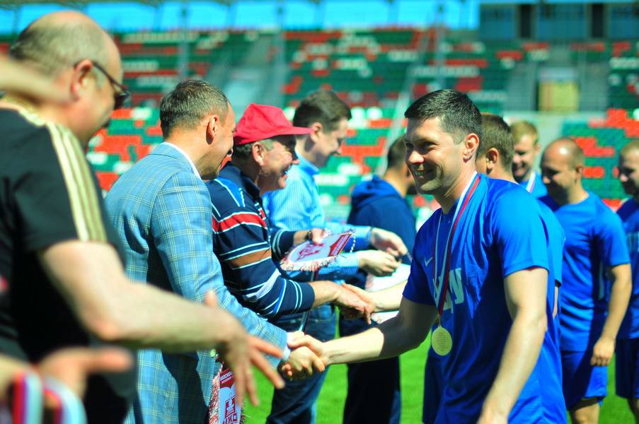 Футбольный турнир, посвященный 74-годовщине Победы в Великой Отечественной войне, прошел на стадионе «Сапсан-арена». Участников матча приветствовали руководители ведомств.