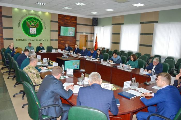 В совещании приняли участие помощник первого заместителя руководителя ФТС России Василий Леонидов, представители территориальных подразделений ФСБ, МВД, Россельхознадзора, Пограничного управления, Роспотребнадзора, Ространснадзора, начальник таможни Владислав Лёгкий, руководители ряда подразделений таможни, участвующих в работе по пресечению ввоза в Россию товаров отдельной категории, в т.ч. товаров из списка продуктового эмбарго.