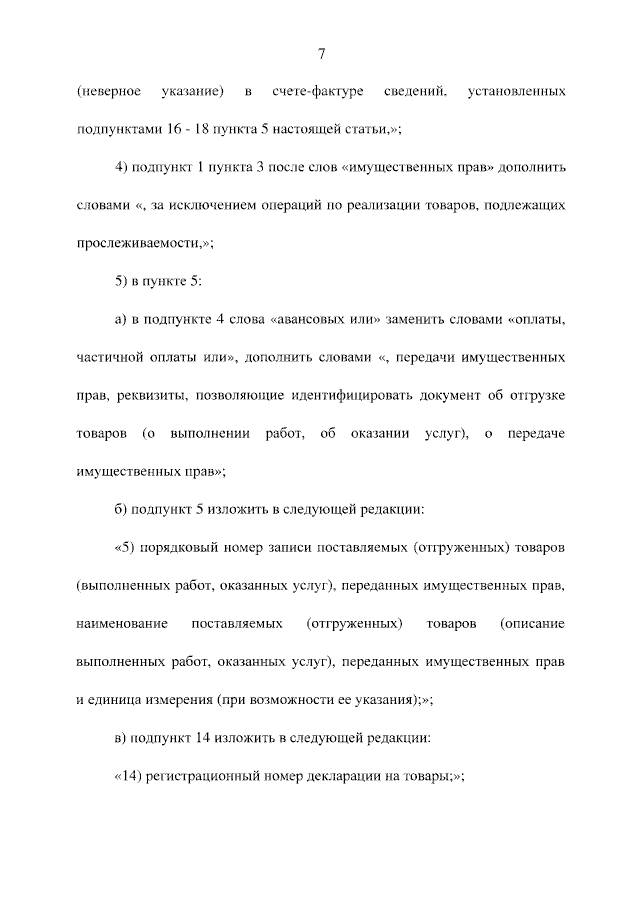 4) подпункт 1 пункта 3 после слов "имущественных прав" дополнить словами ", за исключением операций по реализации товаров, подлежащих прослеживаемости,";