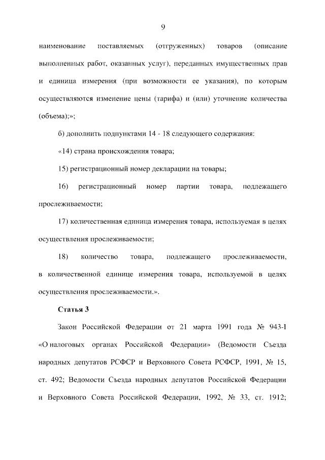 "23. Налогоплательщики, осуществляющие операции с товарами, подлежащими прослеживаемости в соответствии с законодательством Российской Федерации (далее в настоящем Кодексе - товары, подлежащие прослеживаемости), обязаны представлять в налоговый орган отчеты об операциях с товарами, подлежащими прослеживаемости, и документы, содержащие реквизиты прослеживаемости, в случаях и порядке, которые установлены Правительством Российской Федерации.";