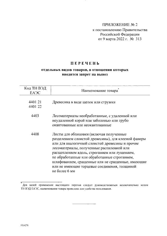 Приложение № 2 к постановлению Правительства Российской Федерации от 9 марта 2022 г. № 313