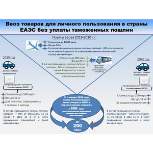 С 1 января 2020 года порог беспошлинного ввоза товаров для личного пользования, приобретаемых в зарубежных интернет-магазинах, снижен с 500 до 200 евро. Размер таможенной пошлины сократился вдвое и составил 15% от стоимости ввозимых товаров, но не менее 2 евро за 1 килограмм веса в части превышения...