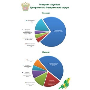 Внешнеторговый оборот ЦФО за январь - март 2020 года составил 78,2 млрд долларов США.Объем экспорта составил 44,7 млрд долларов США, импорта – 33,5 млрд долларов США.– В распределении экспорта по товарной номенклатуре лидируют минеральные продукты – 32,6 млрд долларов США (в том числе...